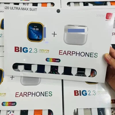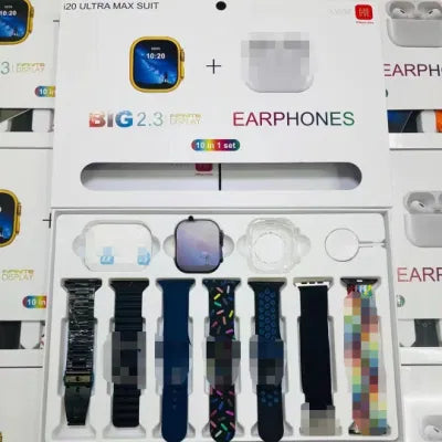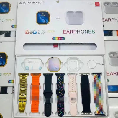 I20 Ultra Max Suit Smart Watch 10 in 1 in One Box 2.3inch Large Screen Smart Watch with Earbuds
