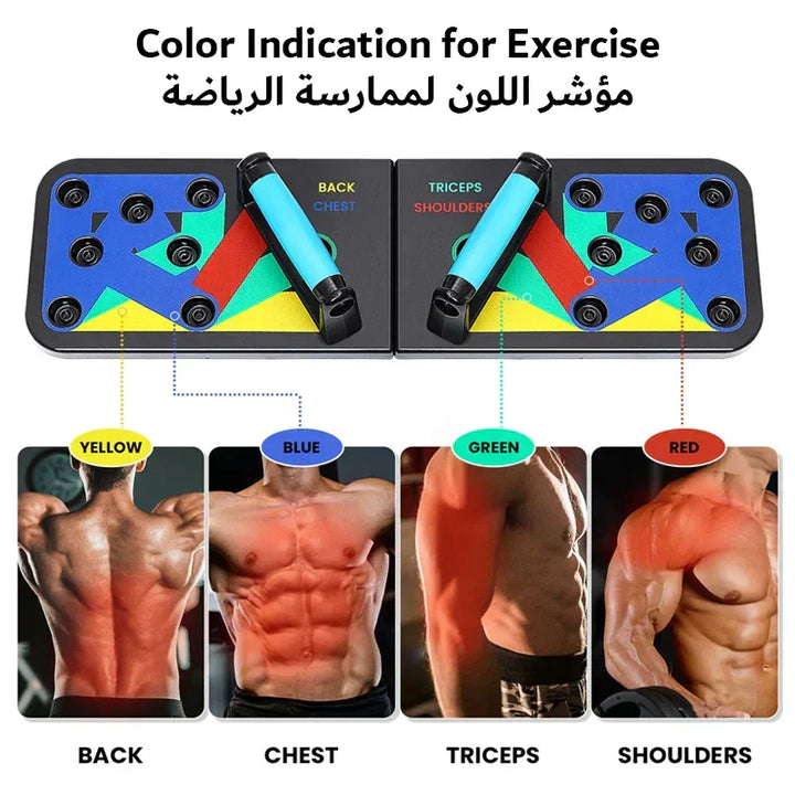 The Push Up Board is an innovative color-coded push-up board training system that strengthens and sculpts the entire upper body (chest, shoulders, back, and arms) while engaging your total core.💪😎