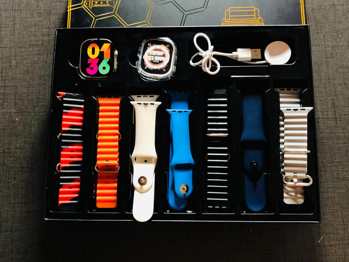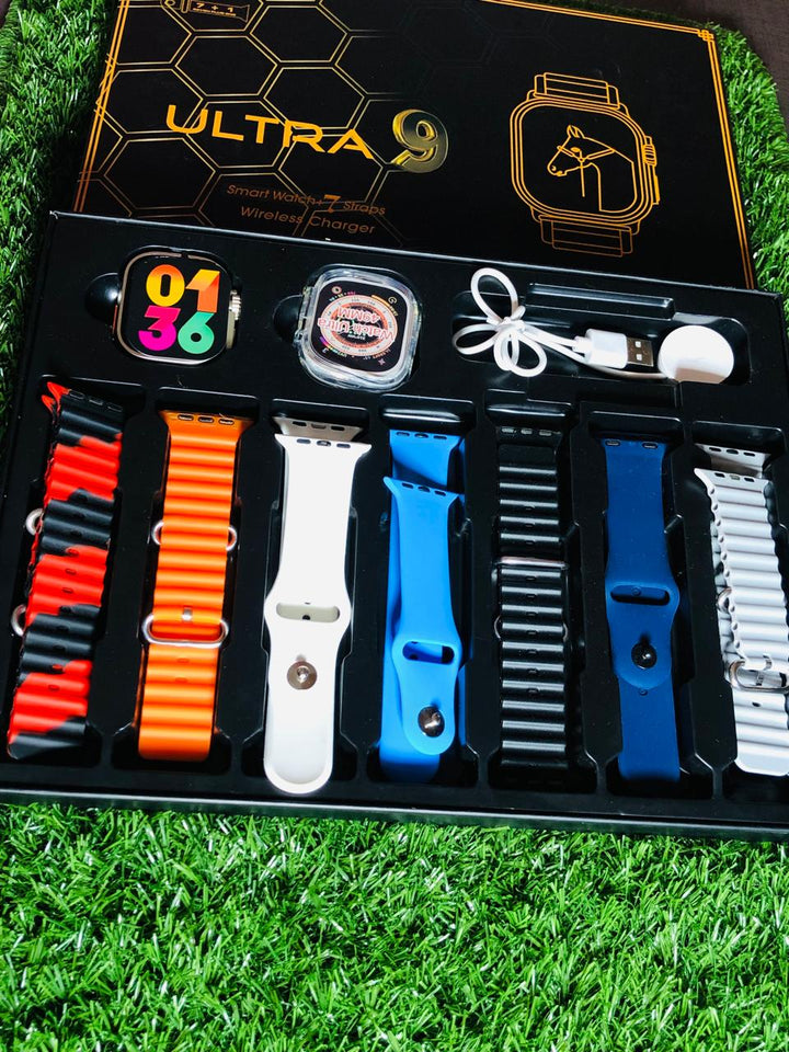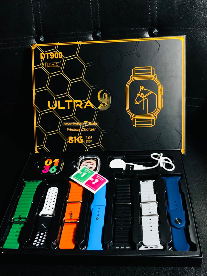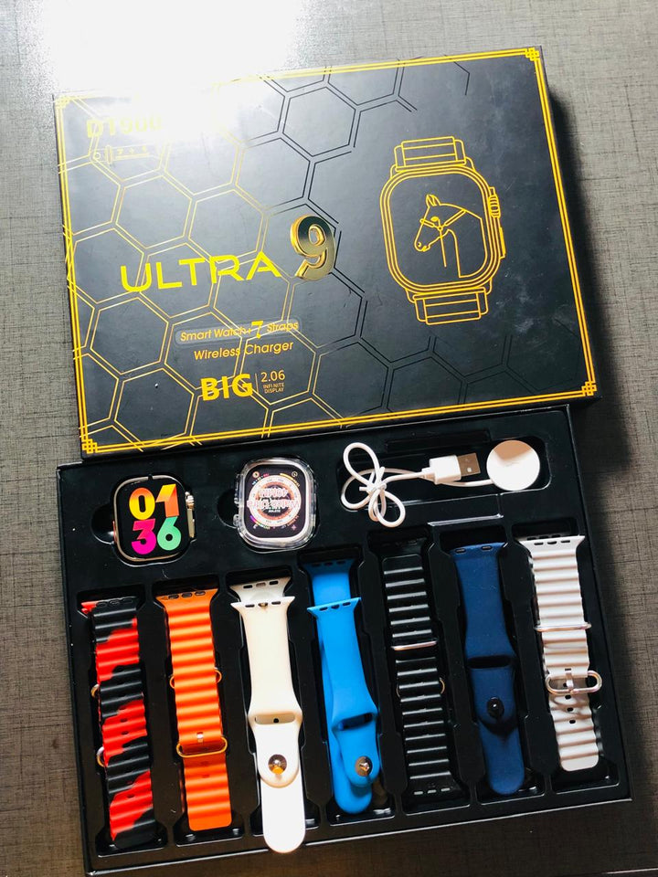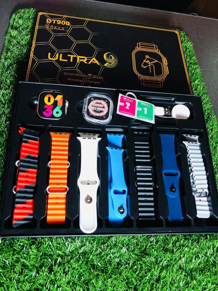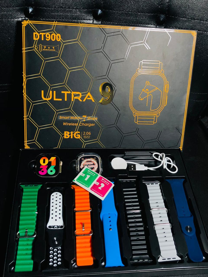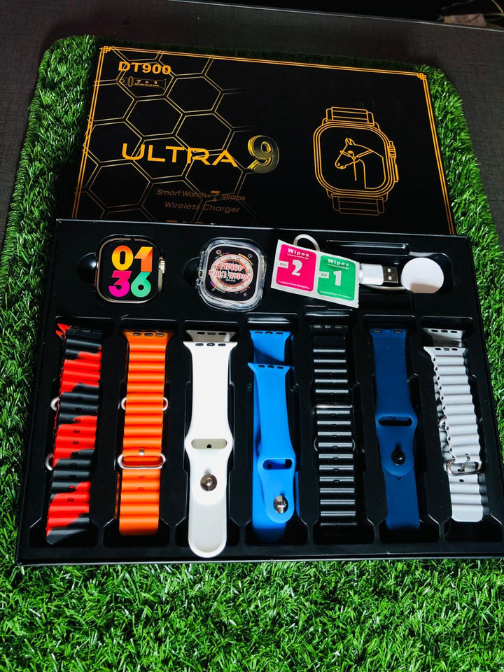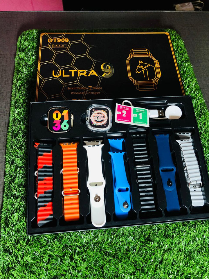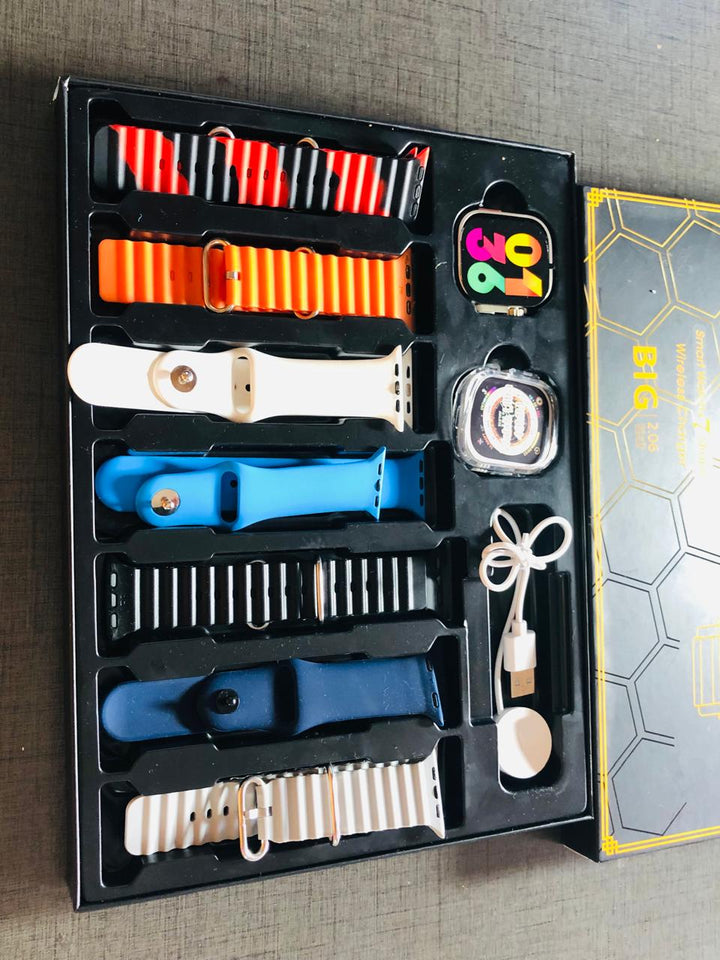 Product Details of 7in1 Ultra Smart Watch With Straps Metal Ocean Rubber Nylon Wireless Charger Bt Call In Ultra SmartwatchIntroducing the 7in1 Ultra Smart Watch, a game-changer in wearable technology. Packed with an array of cutting-edge features, this watch is designed to enhance your lifestyle like never before.With its sleek and stylish design, this watch comes with interchangeable straps made from high-quality materials such as metal, ocean rubber, and nylon. Choose a strap that matches your mood or outfit effortlessly.No more tangled wires or hassle of carrying around charging cables. The wireless charger included with the smartwatch ensures convenient and fast charging on the go. Stay connected without interruption.Experience the convenience of hands-free calling directly from your wrist. With Bluetooth call functionality, you can make and receive calls seamlessly without reaching for your phone.This ultra smartwatch is a perfect companion for those who value style, functionality, and versatility. Get ready to elevate your wearable experience with the 7in1 Ultra Smart Watch.